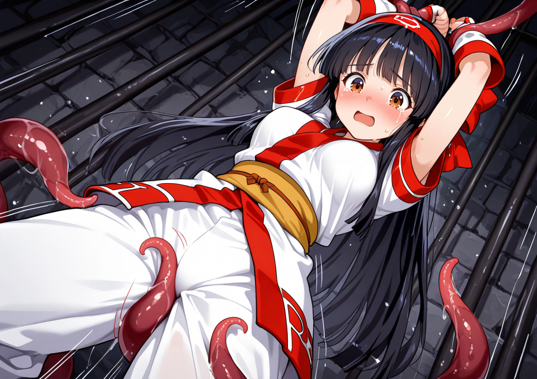 触手に衣装を破かれ、たっぷりとくすぐり&挿入される。
