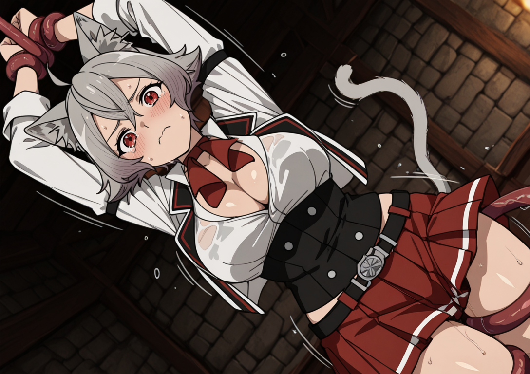 触手に衣装を破かれ、たっぷりとくすぐり&挿入される。